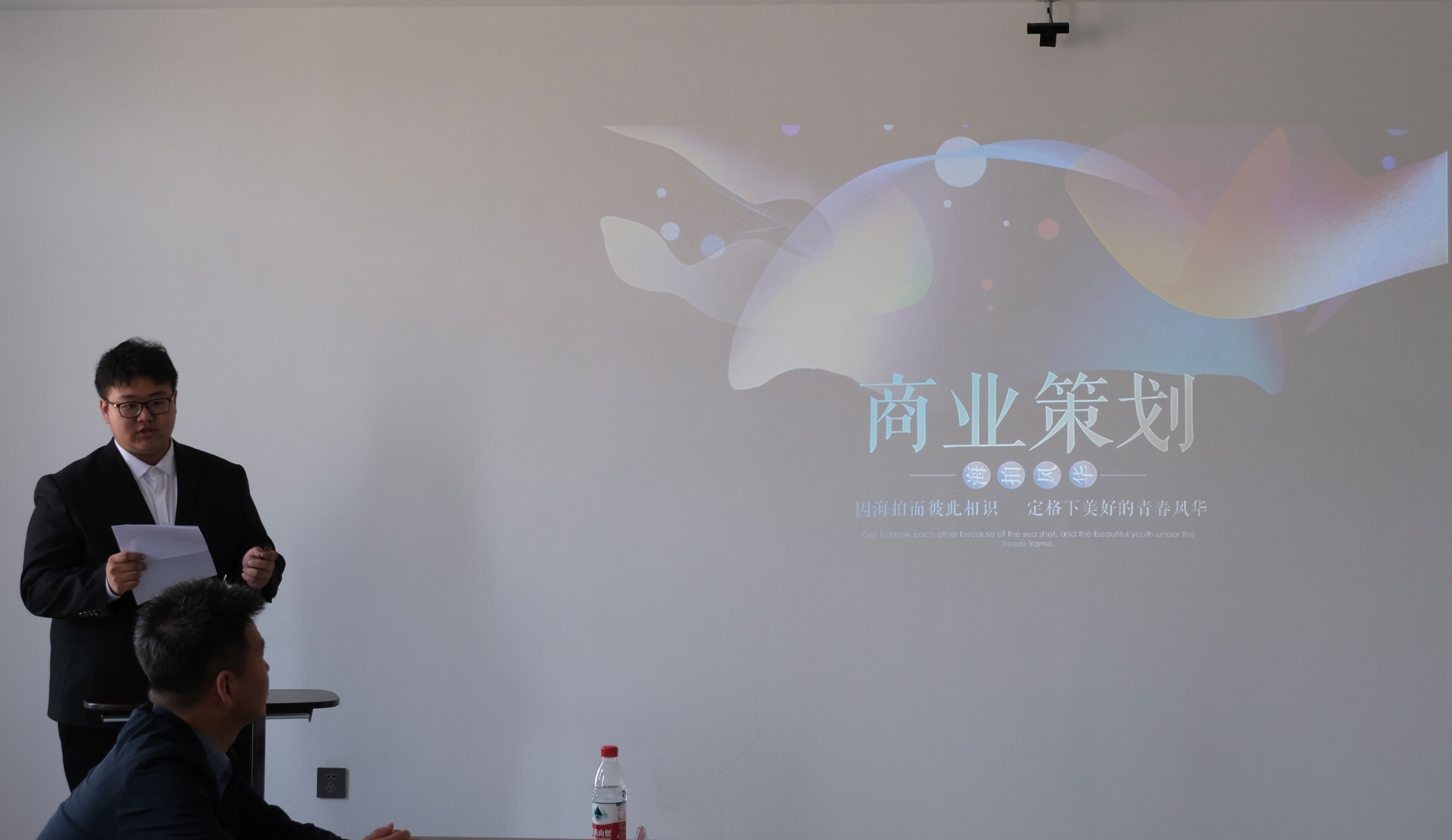 会上,商学院董子尧同学汇报了“海拍传媒工作室”创业项目。与会企业专家、学校老师对项目进行点评,一致表扬了董子尧同学的创新精神与创业勇气,并就投资收益周期、项目的市场痛点问题、盈利模式进行了深入的交流。